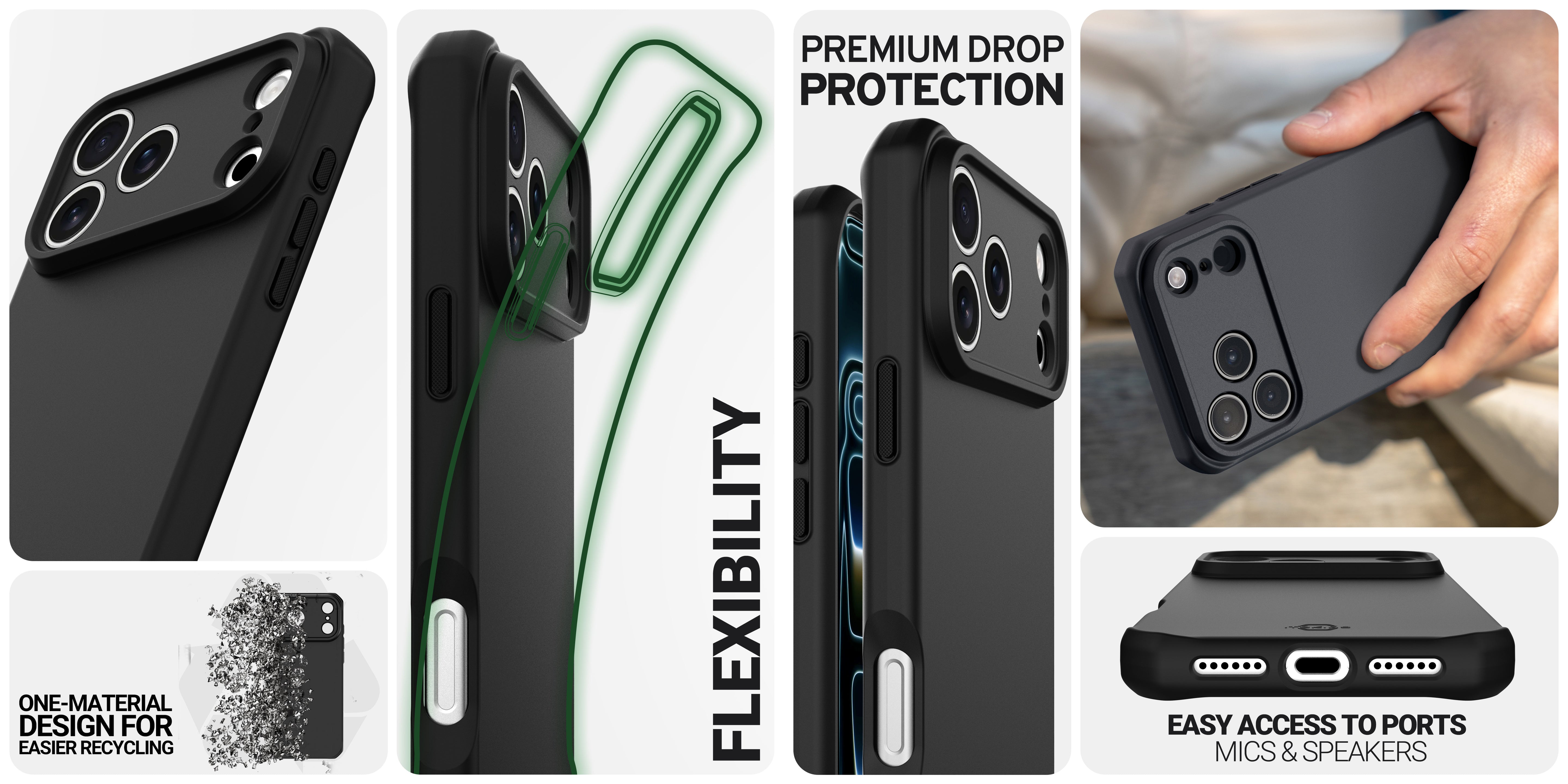 SPECTRUM_R // SOLID has a rugged, solid surface and has been certified by the Global Recycled Standard for using 100% recyclable materials and produced with sustainably. It delivers premium drop protection and antimicrobial defense.