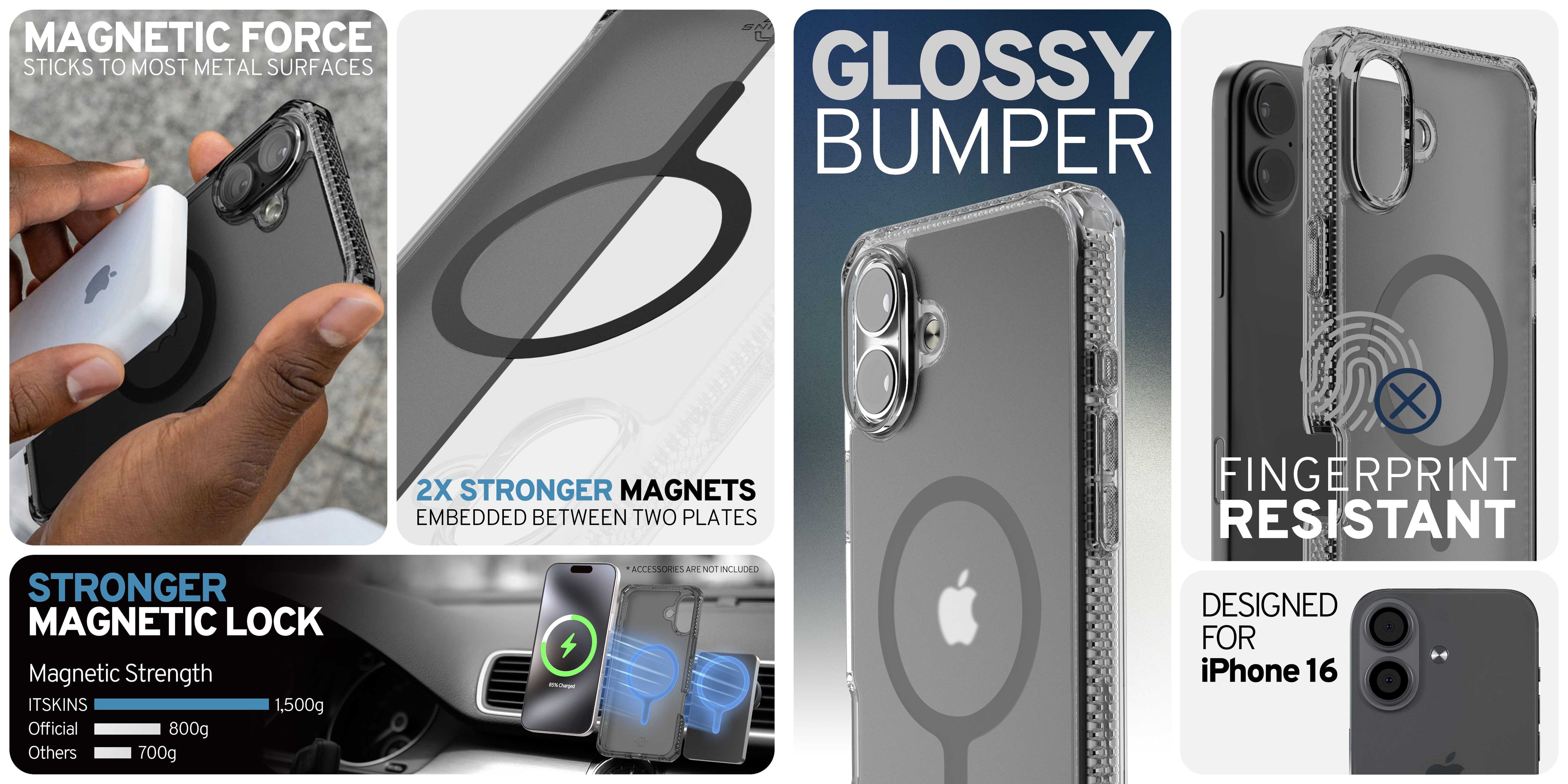 HYBRID R VAPOR : combines a sleek, matte frosted hardback with a glossy clear bumper, showcasing your phone's titanium trim. Its fingerprint-resistant, anti-scratch back surface maintains beauty over time. It is integrated with 2X Stronger MagSafe for secure attachment, AI-optimized for up to 3M / 10ft drop protection, and eco-friendly with Global Recycled Standard Certification. Equipped with air-pocket corners, antimicrobial defense, and responsive buttons, it's prepared for any adventure with a Lifetime Warranty.
