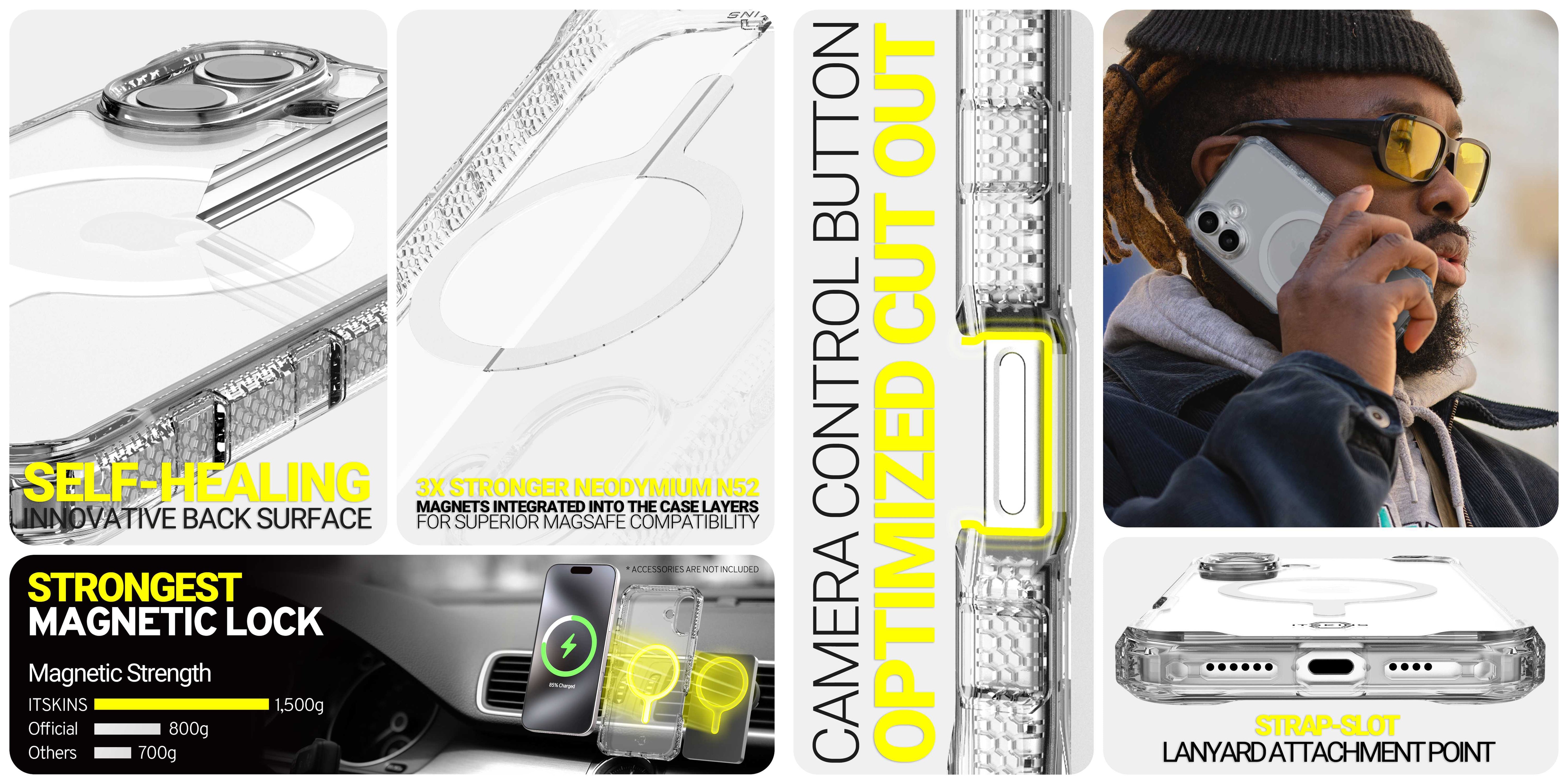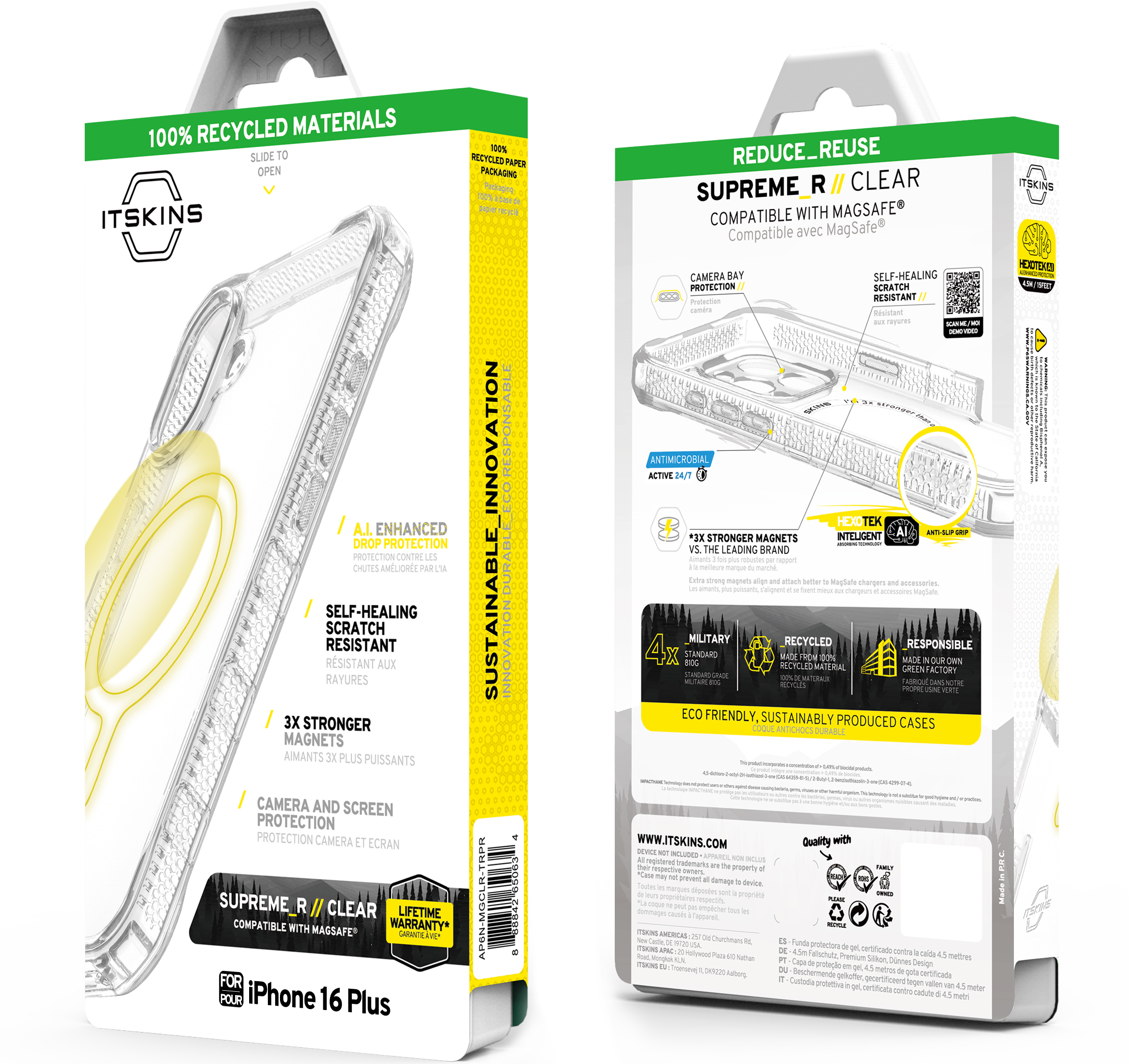 SUPREME_R meets MIL-SPECS for armored defense, with a tactical grip design for added security in hand. Engineered with XXL Air Corners for advanced impact deflection. Boasts 3X Stronger MagSafe for maximum attachment strength with accessories. Eco-designed and Global Recycled Standard Certified for sustainable protection.