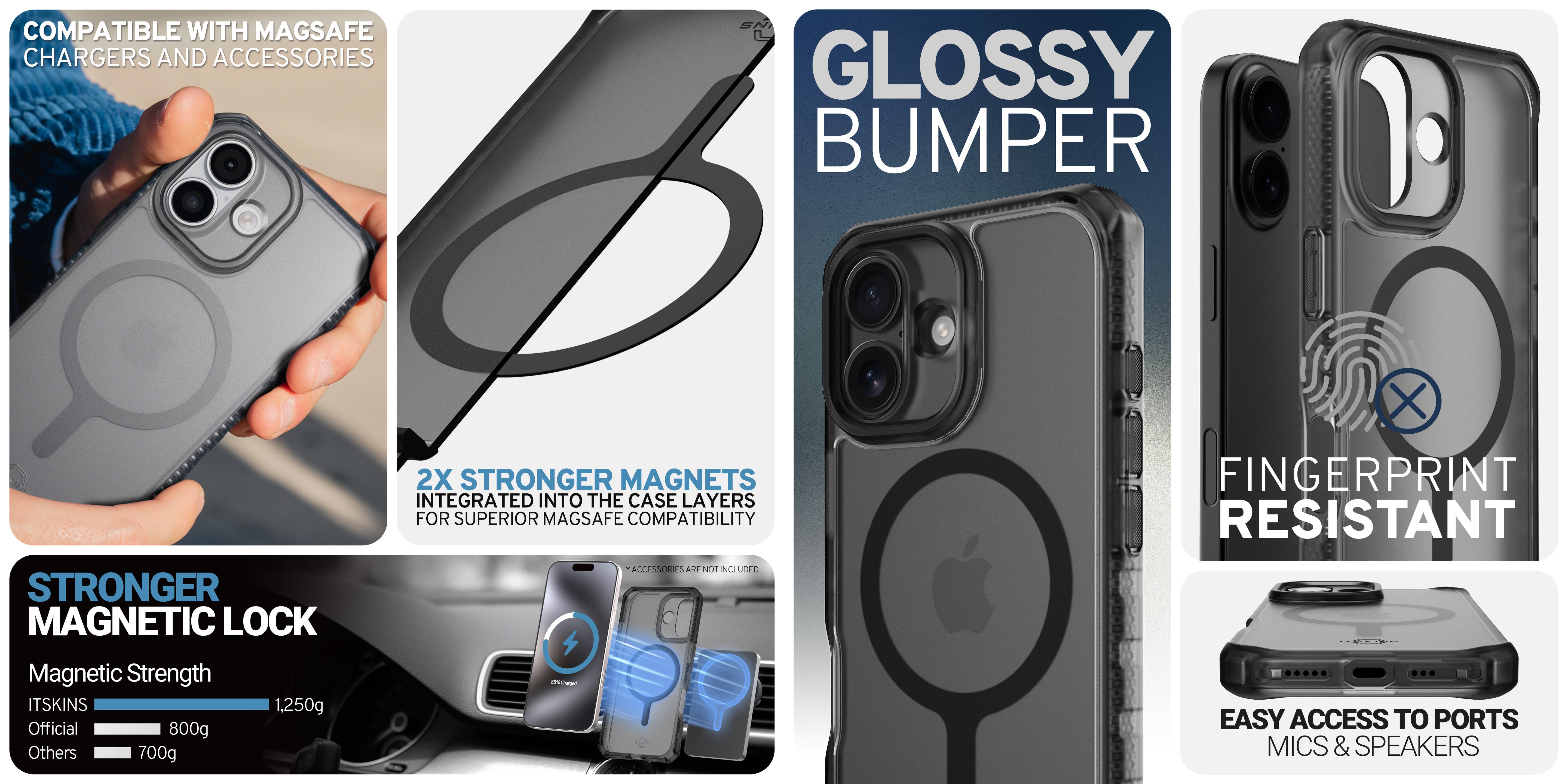 HYBRID_R FROST : features a beautiful, matte frosted finish with an anti-scratch surface so the integrity of the case stays intact., melded with 2X Stronger MagSafe, AI-Enhanced 3M / 10ft Drop Defense, and Stay-Clear Tech. Features a Solid Bumper, Eco-Conscious with Global Recycled Standard Certification, Air-Pocket Corners, Antimicrobial Protection, and Tactile Buttons. Adventure-Ready with a Lifetime Warranty.